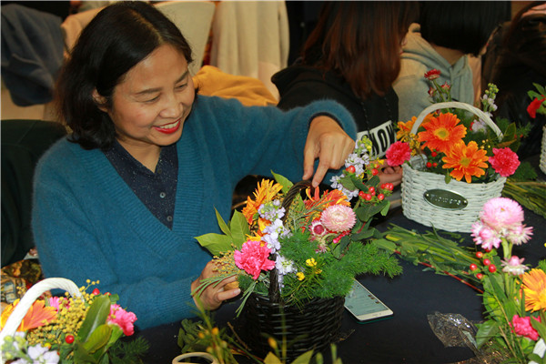 在老師的指導下,大家開始修剪枝葉、編綠葉、擺造型……一支支嬌艷欲滴的鮮花通過大家精妙的構思搭配,不一會就變成一籃藍精美的花藝作品。活動現場花香四溢、滿室芬芳,大家與花相伴,歡聲笑語,度過了一個開心快樂的節日。