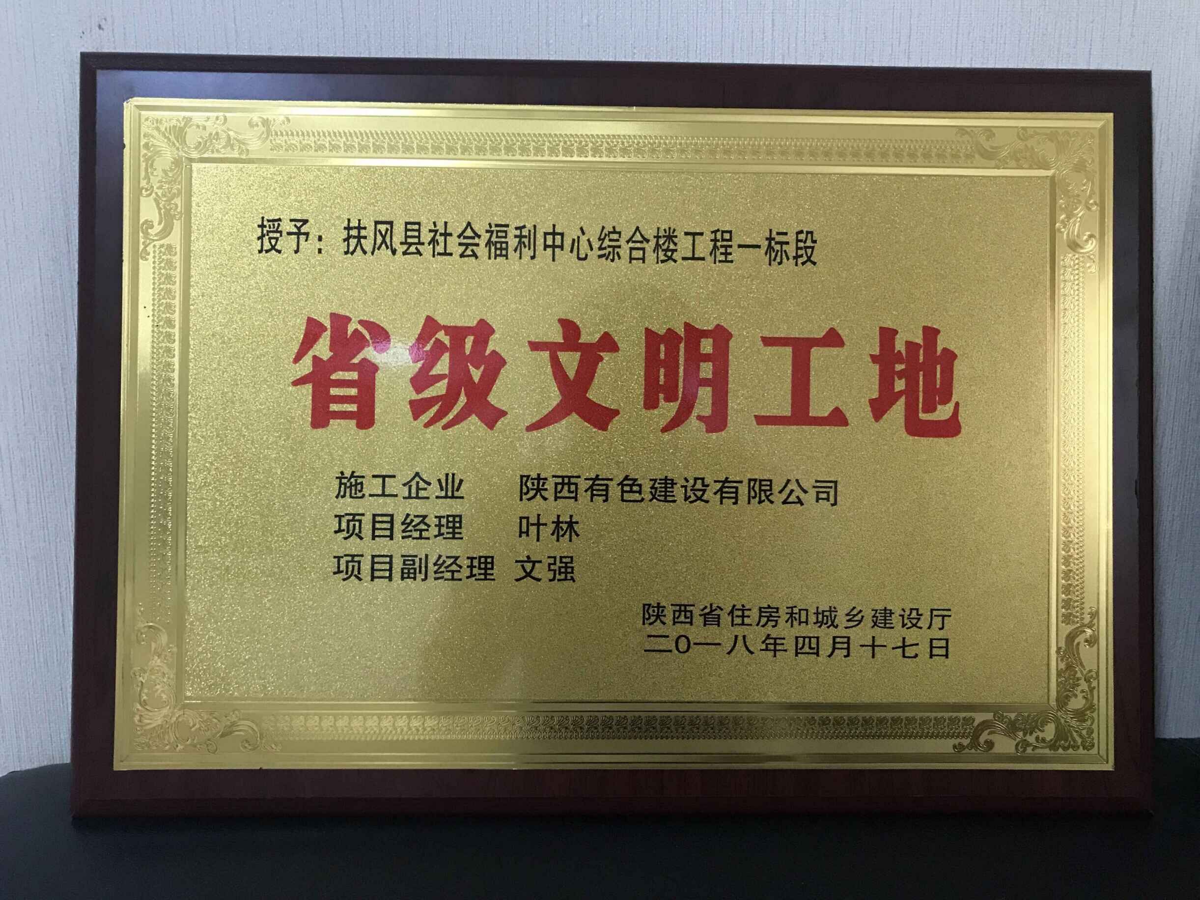 近日,從陜西省住建廳傳來喜訊,陜西有色建設(shè)有限公司承建的扶風(fēng)縣社會福利中心綜合樓一標(biāo)段工程榮獲“2018年度省級文明工地”稱號。